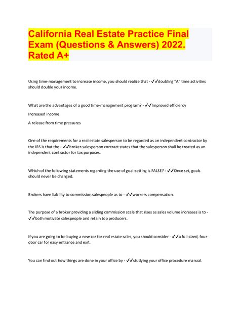IMP - Free PDF CALIFORNIA REAL ESTATE LAW FINAL EXAM ANSWERS PDF Library Genesis