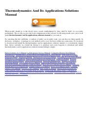 Read THERMODYNAMICS AND ITS APPLICATIONS SOLUTION MANUAL EBOOK Doc